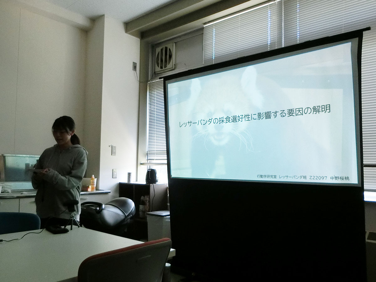 続いで中野さんの発表で、レッサーパンダ飼育の問題点と、それに基づく自身の研究計画についての紹介でした。