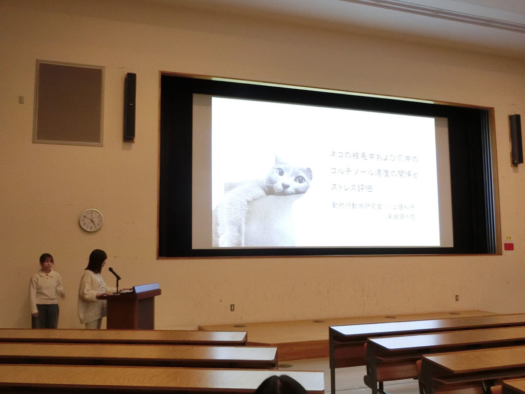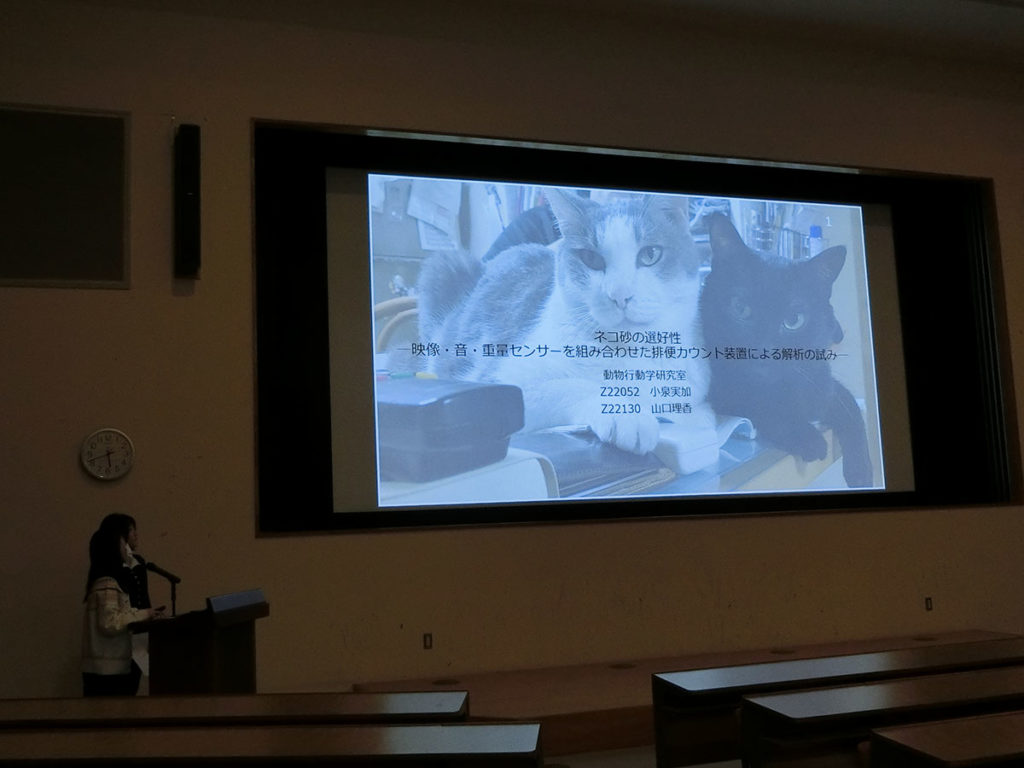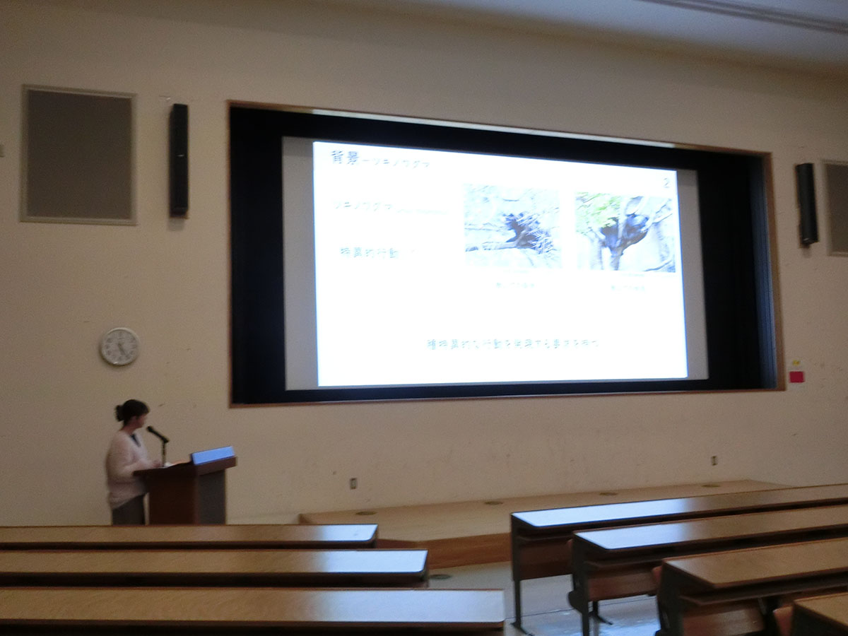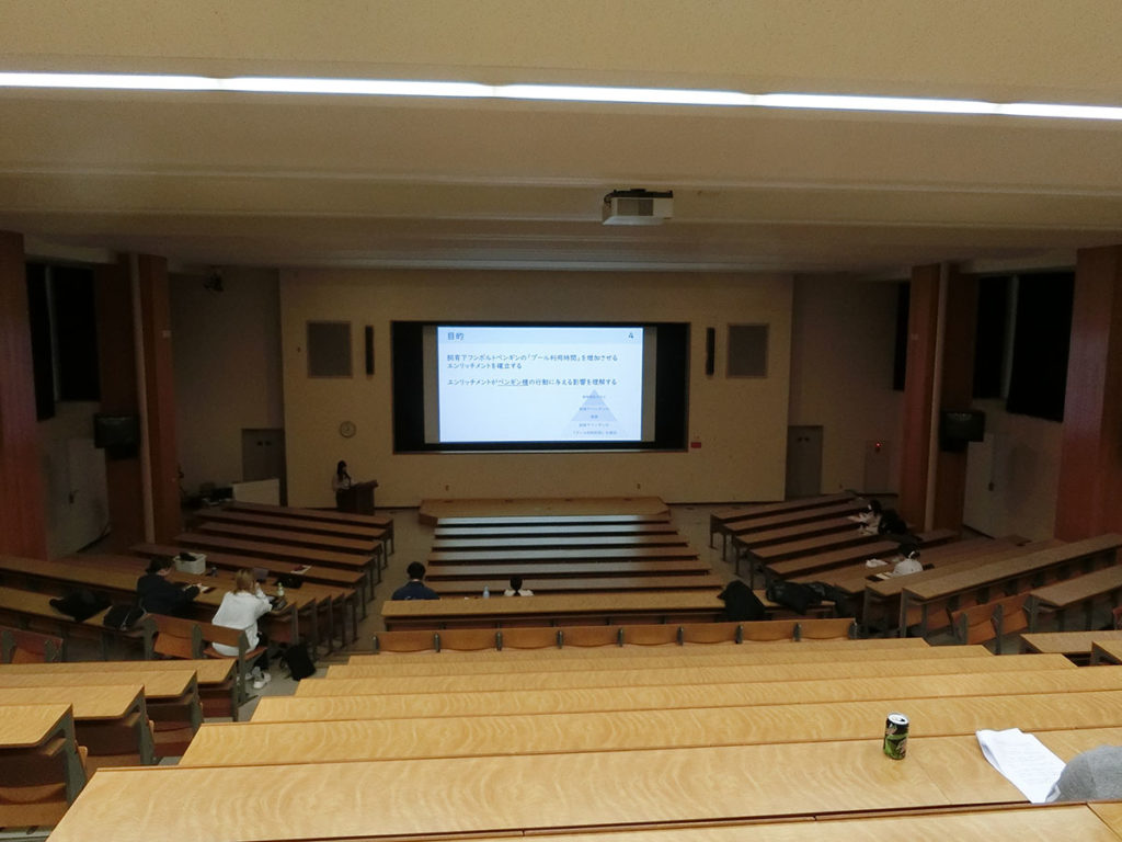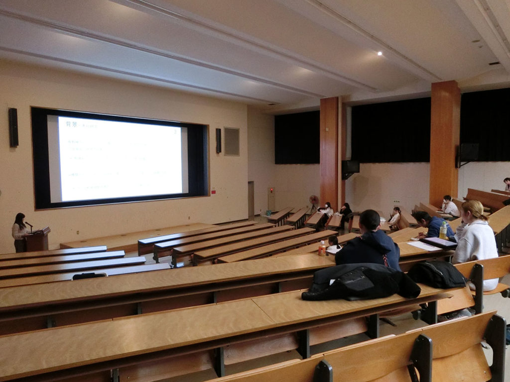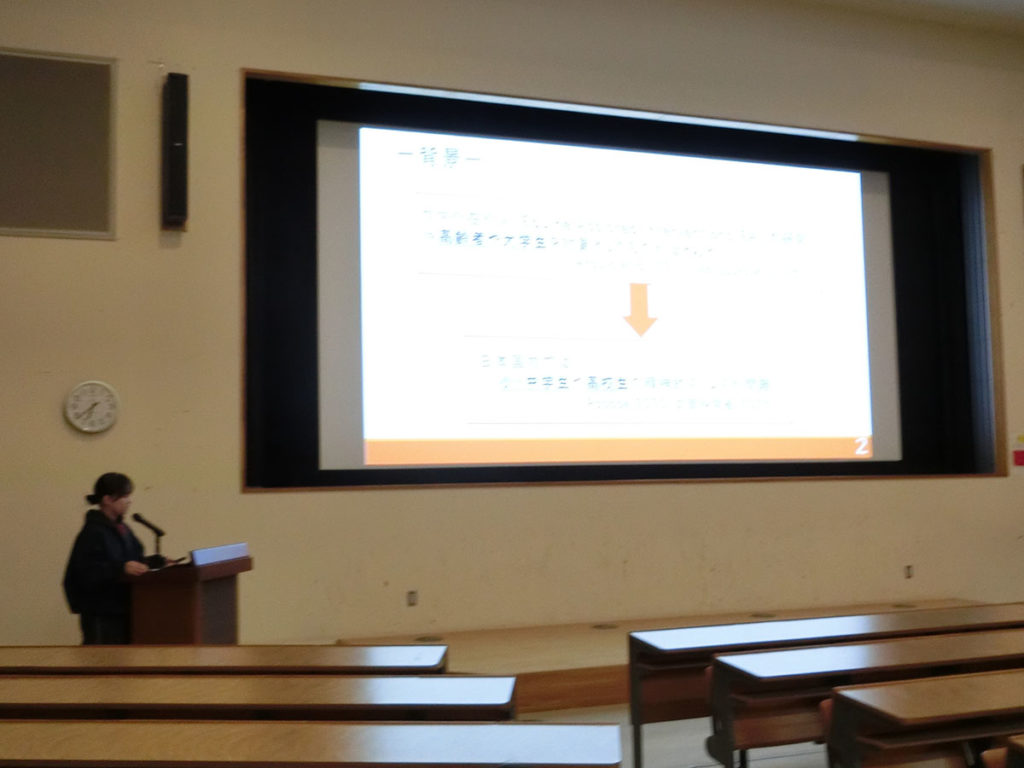 今日も卒論発表会に向けたスライド確認をしました。今日は研究室全員で集まり、本番と同じ会場での発表形式でおこないました。