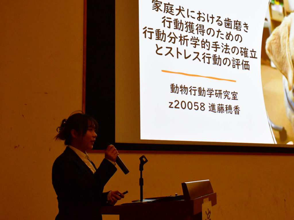 最初は進藤さんによる「家庭犬における歯磨き行動獲得のための行動分析学的手法の確立とストレス行動の評価」でした。