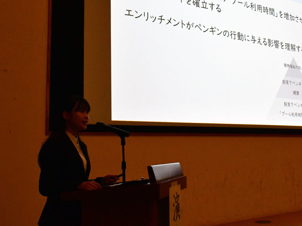 最後は戸張さんによる「飼育下フンボルトペンギンにおけるプール利用時間の増加に有効な環境エンリッチメントの検討」でした。