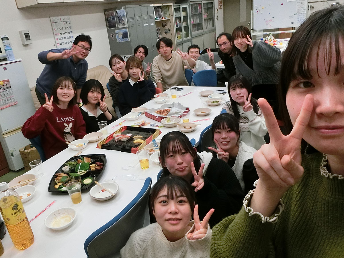 終了後には研究室で打ち上げを開催しました。4年生の皆さん、本当にお疲れさまでした!