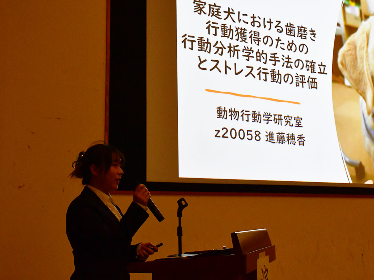 最初は進藤さんによる「家庭犬における歯磨き行動獲得のための行動分析学的手法の確立とストレス行動の評価」でした。