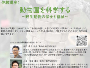 2024年8月22日(木)に開催される2024年度北里大学公開講座において、講師の小倉が「動物園を科学する - 動物園と科学の世界の関係」と題した講演をおこないます。会場は北里大学獣医学部111教室で、時間は18:30か […]